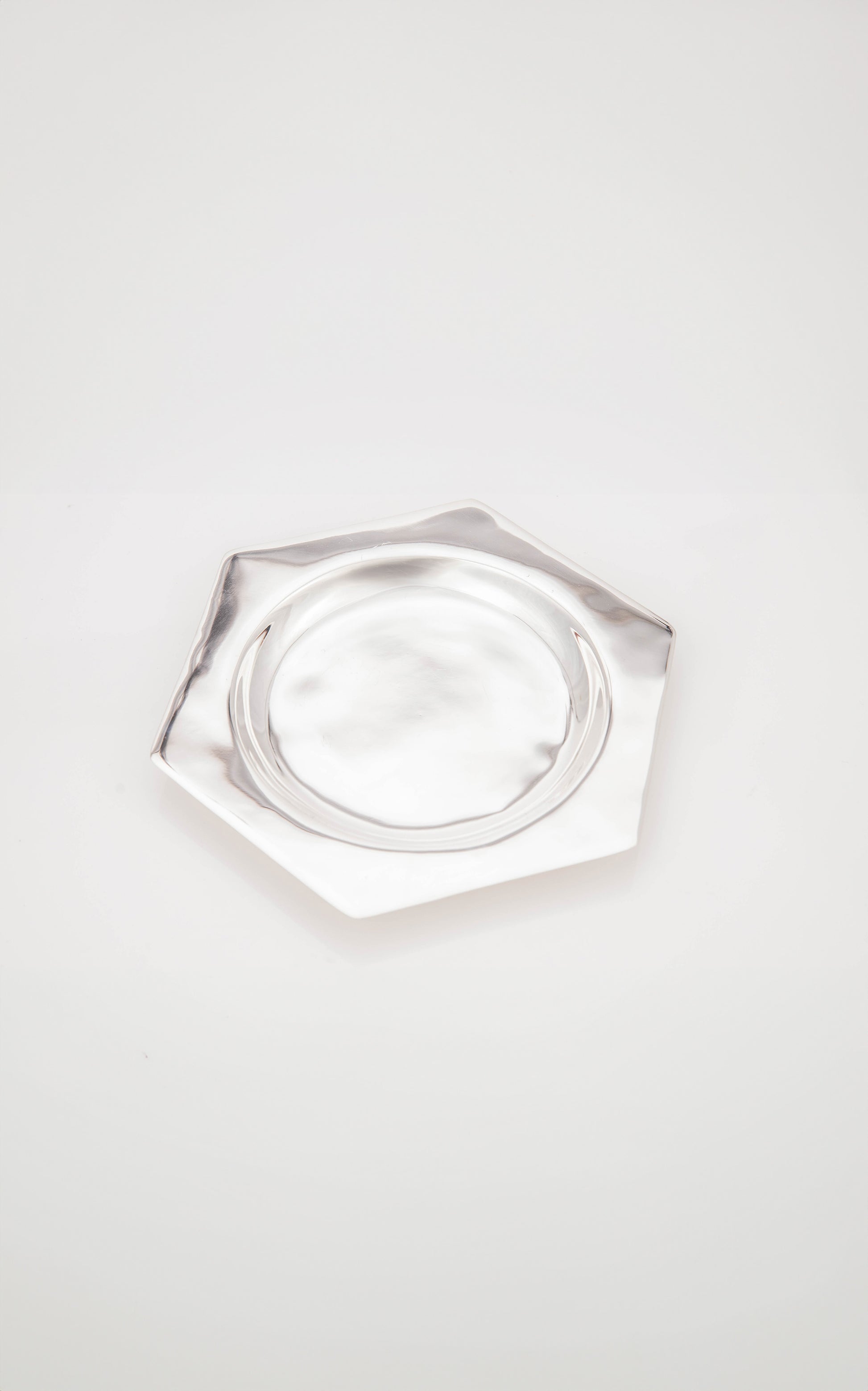 Our Hexagon Bottle Coaster reimagines a classic bar essential through a modern, sculptural lens. Cast in our signature hexagonal shape and finished in luminous silver plate, it’s designed to catch drips and command attention. Whether anchoring a bottle of wine at a candlelit dinner or elevating everyday pours, this striking piece pairs seamlessly with the rest of the collection—or stands confidently on its own. Functional, refined, and quietly bold—Our Hexagon Bottle Coaster brings effortless elegance to the table.